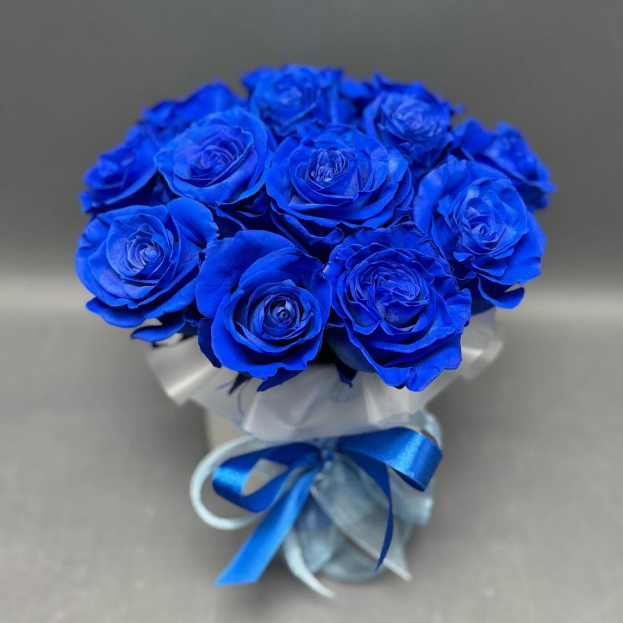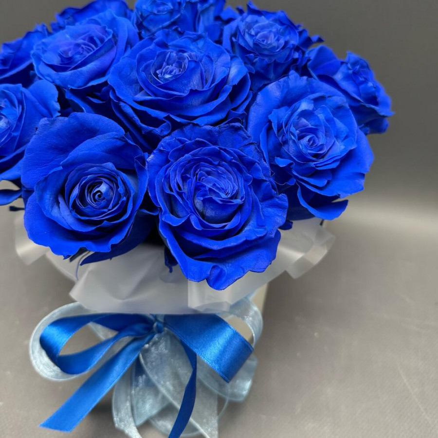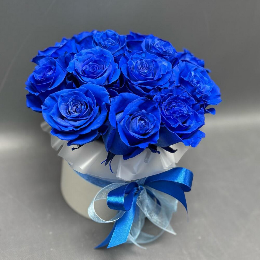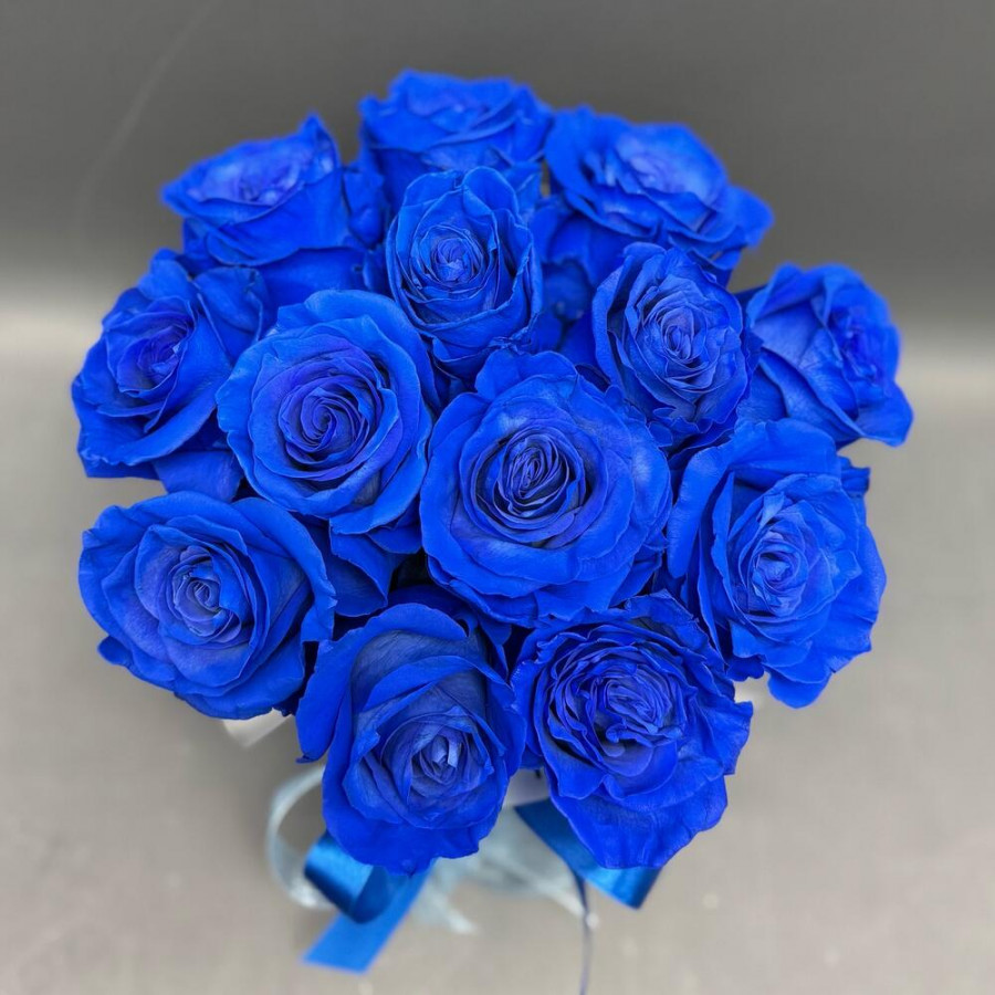 13 синих роз в шляпной коробке в Старом Осколе